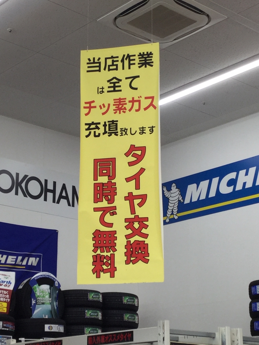 当店ではタイヤ交換時 全車無料でタイヤに窒素ガスを