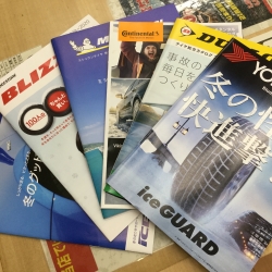 店頭にも各メーカーのスタッドレスが並んでおります。