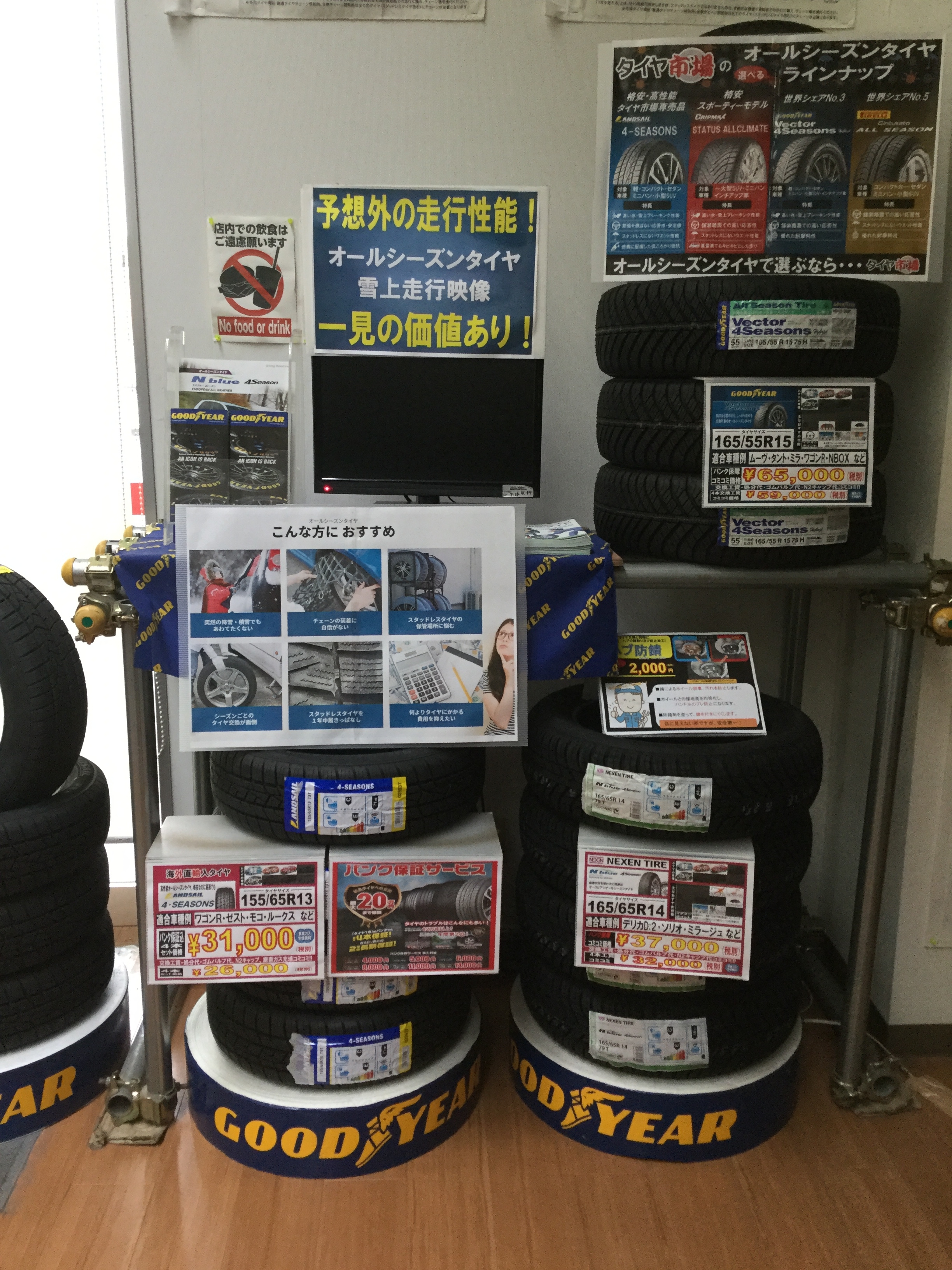 ホームセンターバロータイヤ市場では各メーカーのオールシーズンタイヤがあります!!