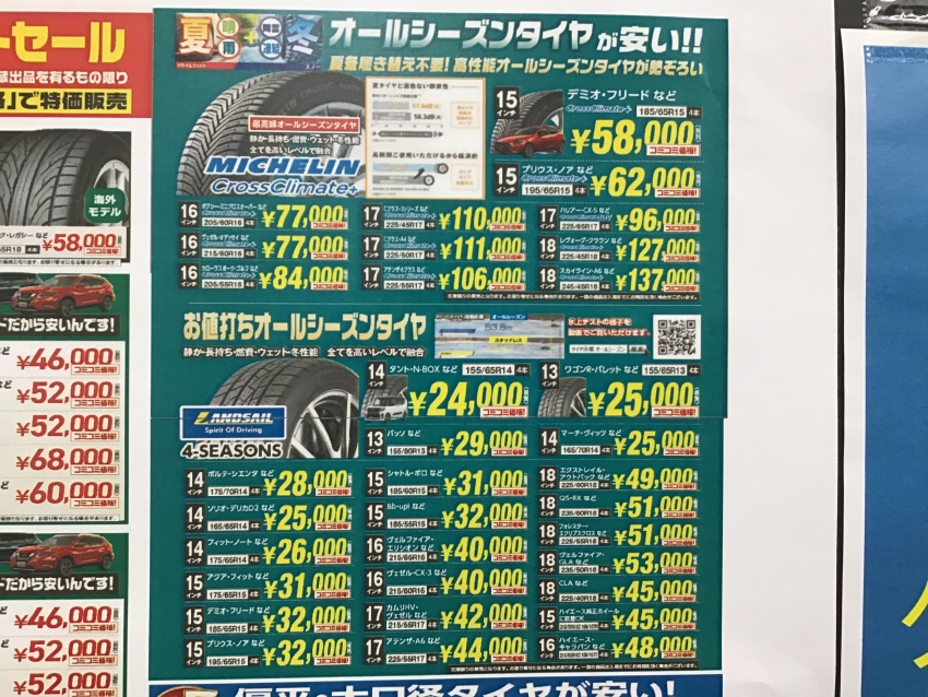 バロータイヤ市場でも昨年から今年にはいってもオールシーズンタイヤを多くのお客様のお車に作業させて頂きました!!