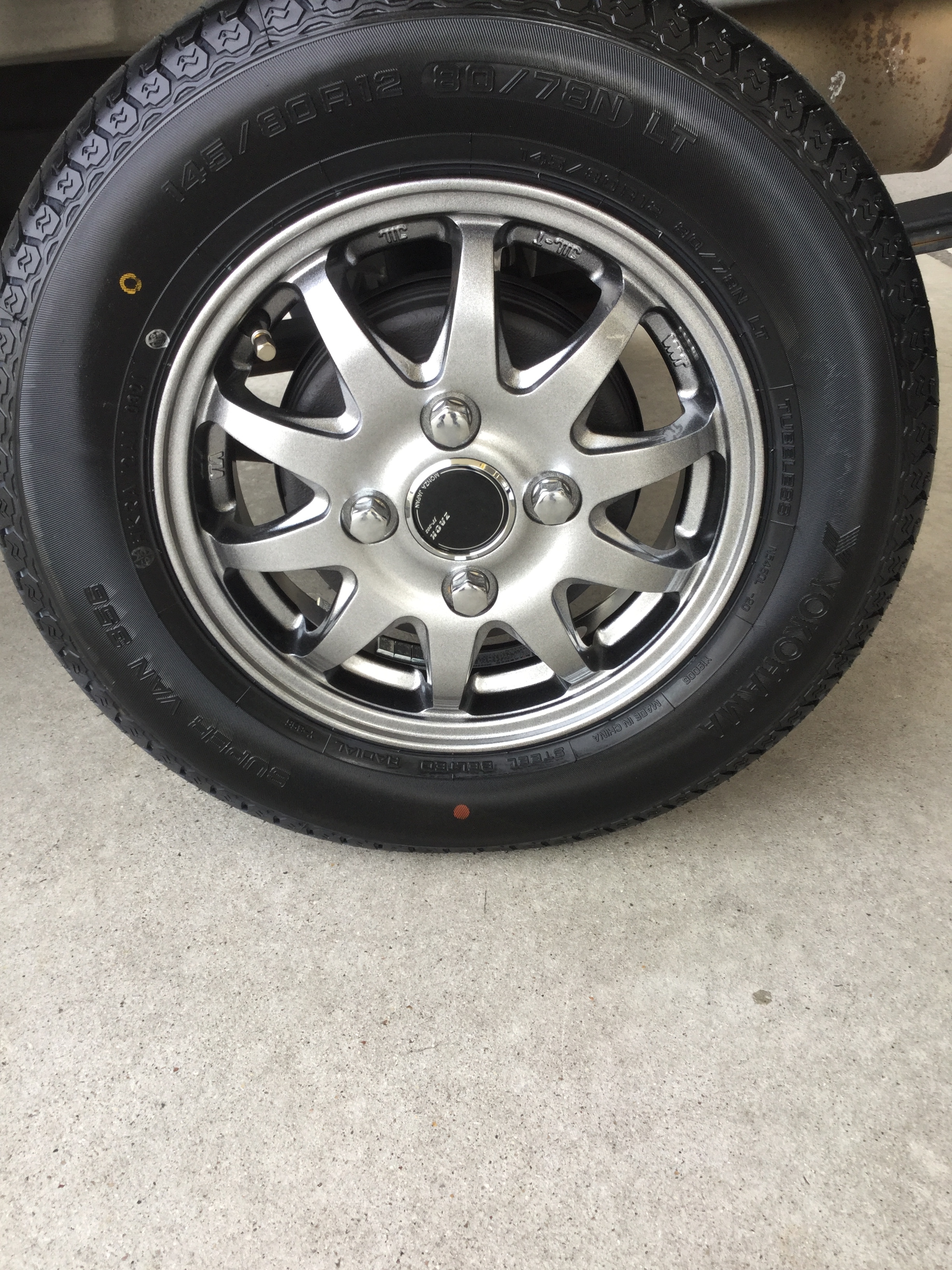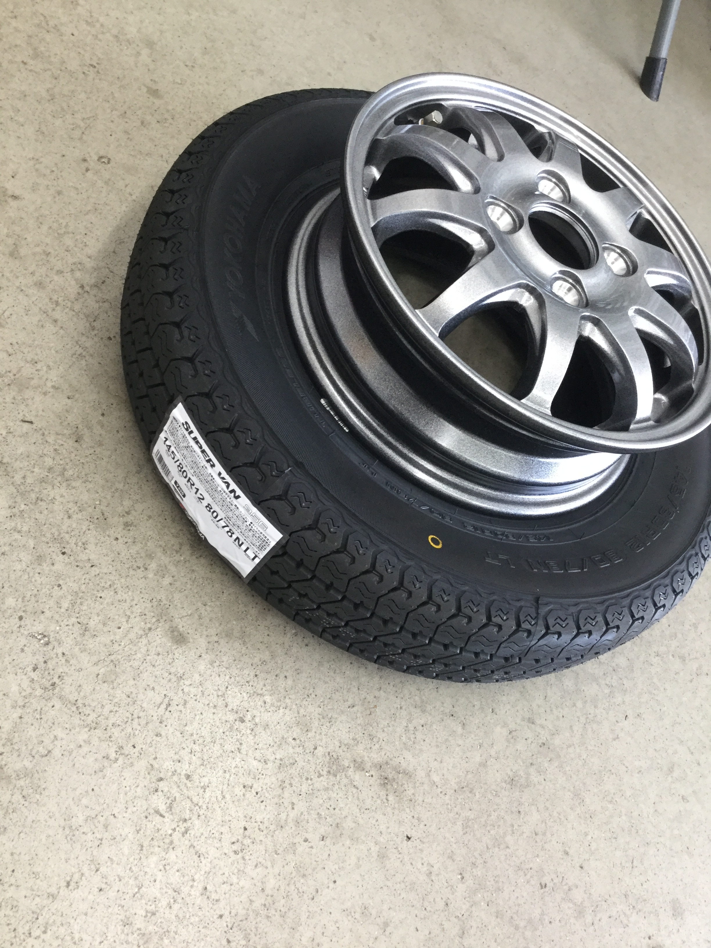 軽トラックのオーナー様に軽トラック夏タイヤとアルミホイールのセットを御購入いただき取付けいたしました!!!