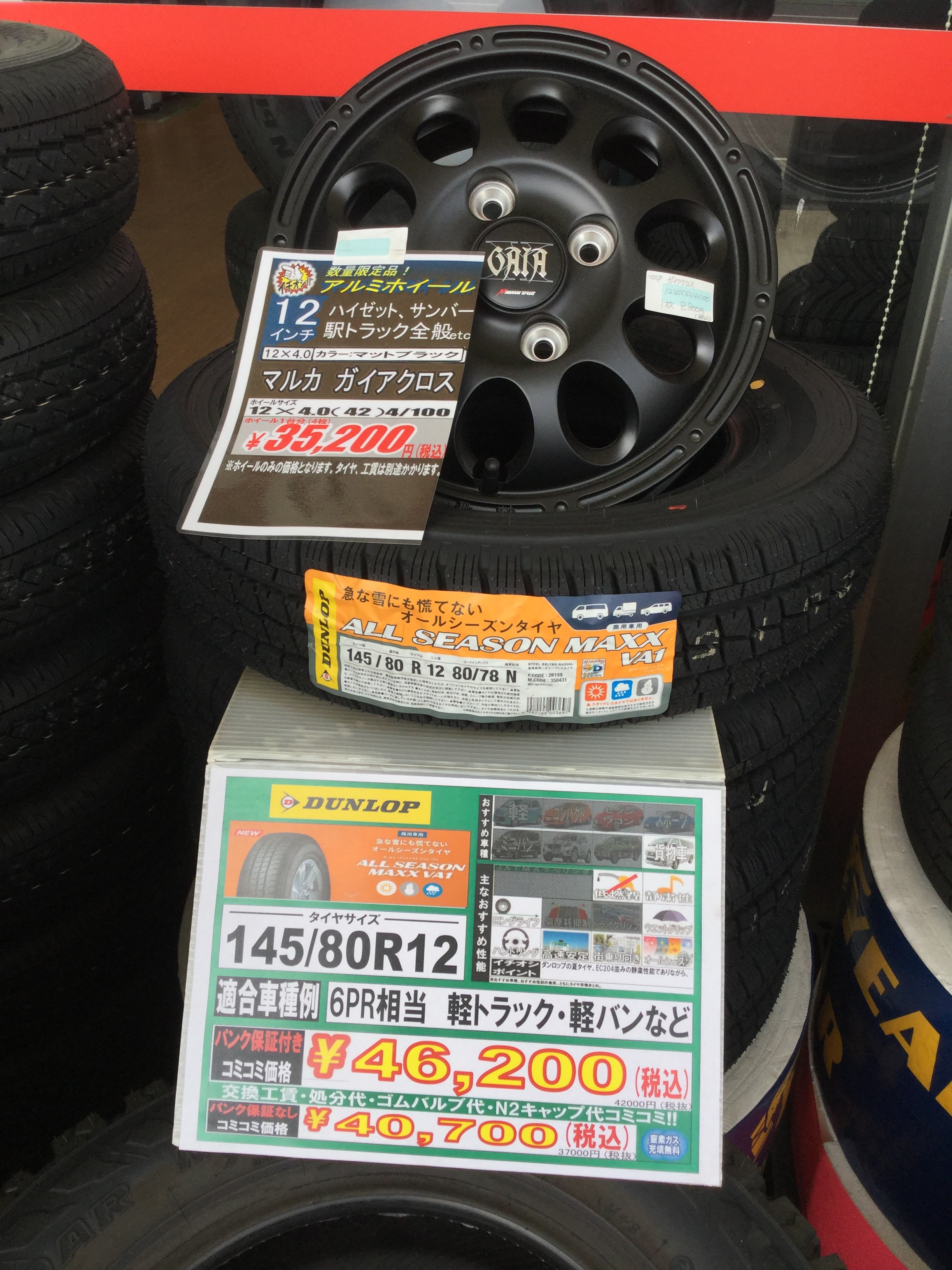 ホームセンターバロータイヤ市場では軽トラックや軽バン用にもいろいろなタイヤやホイールがあります!!
