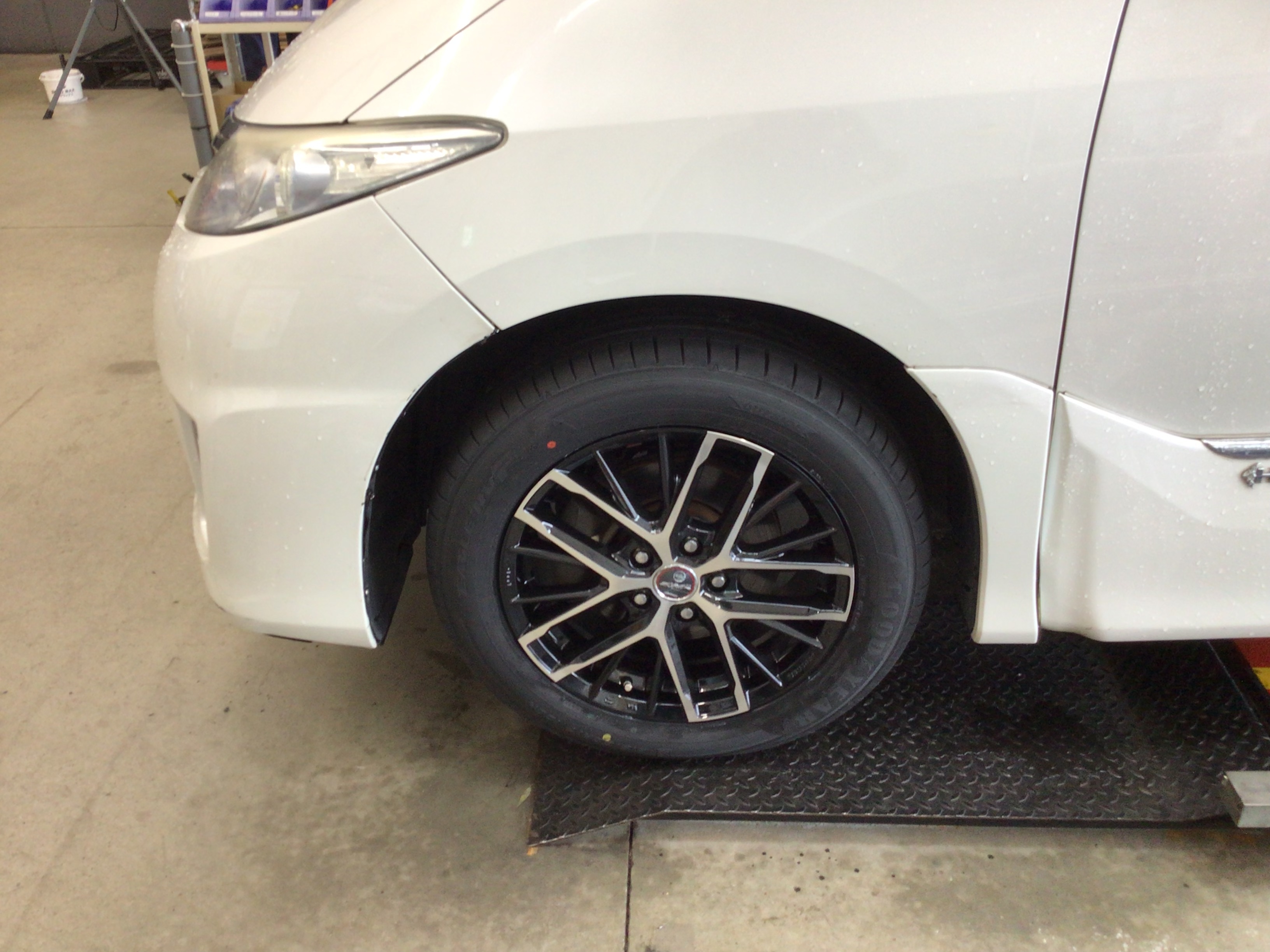 先日、トヨタ エスティマのオーナー様にホイールセットを御購入いただき、取り付けをさせていただきました!