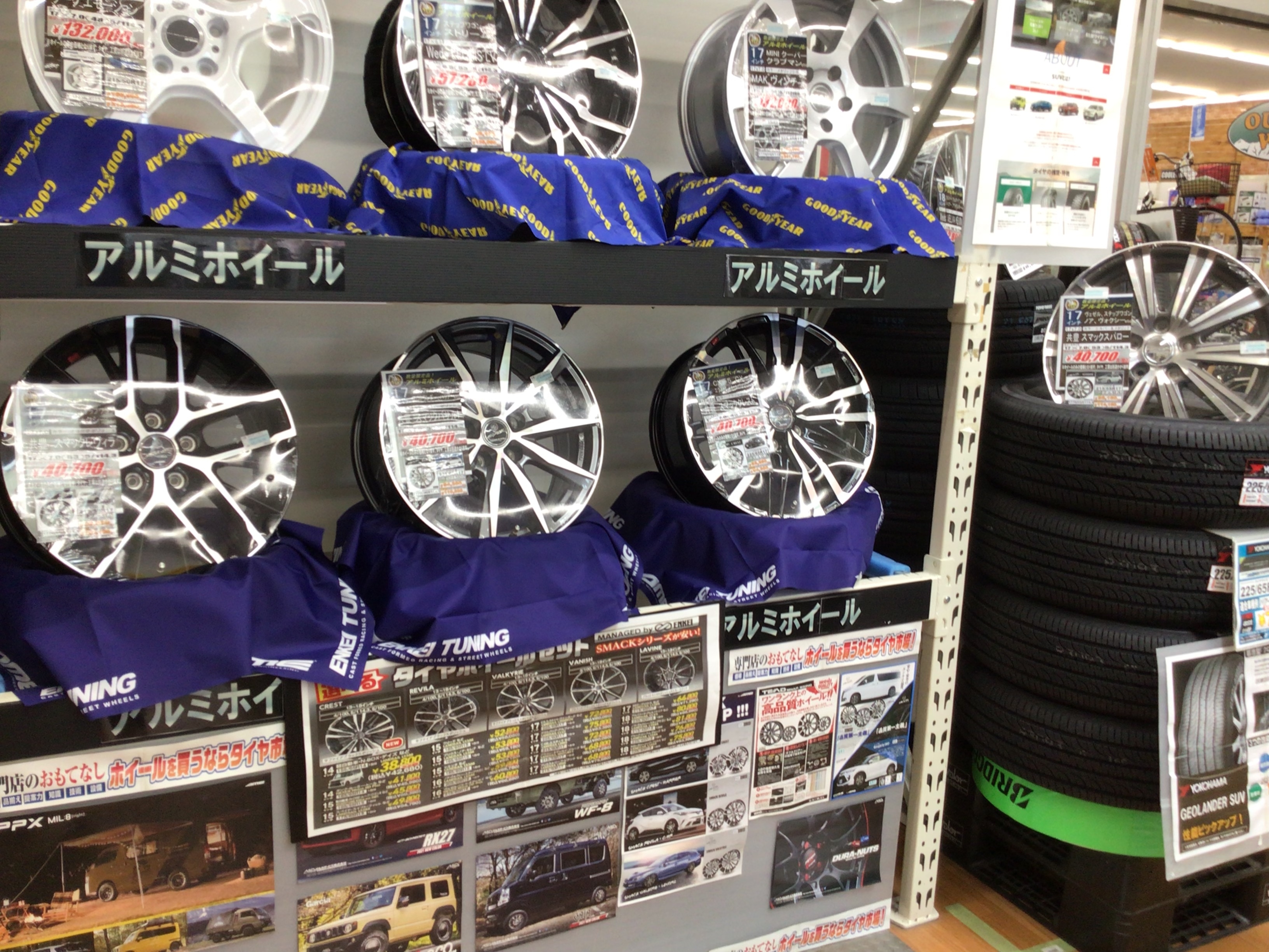 当店でも、ホイールコーナーに数種類展示させていただいておりますので、是非実際にご覧になってください!サイズによってはお取り寄せになる場合もございますが、スタッフ一同心を込めてご案内させていただきます!