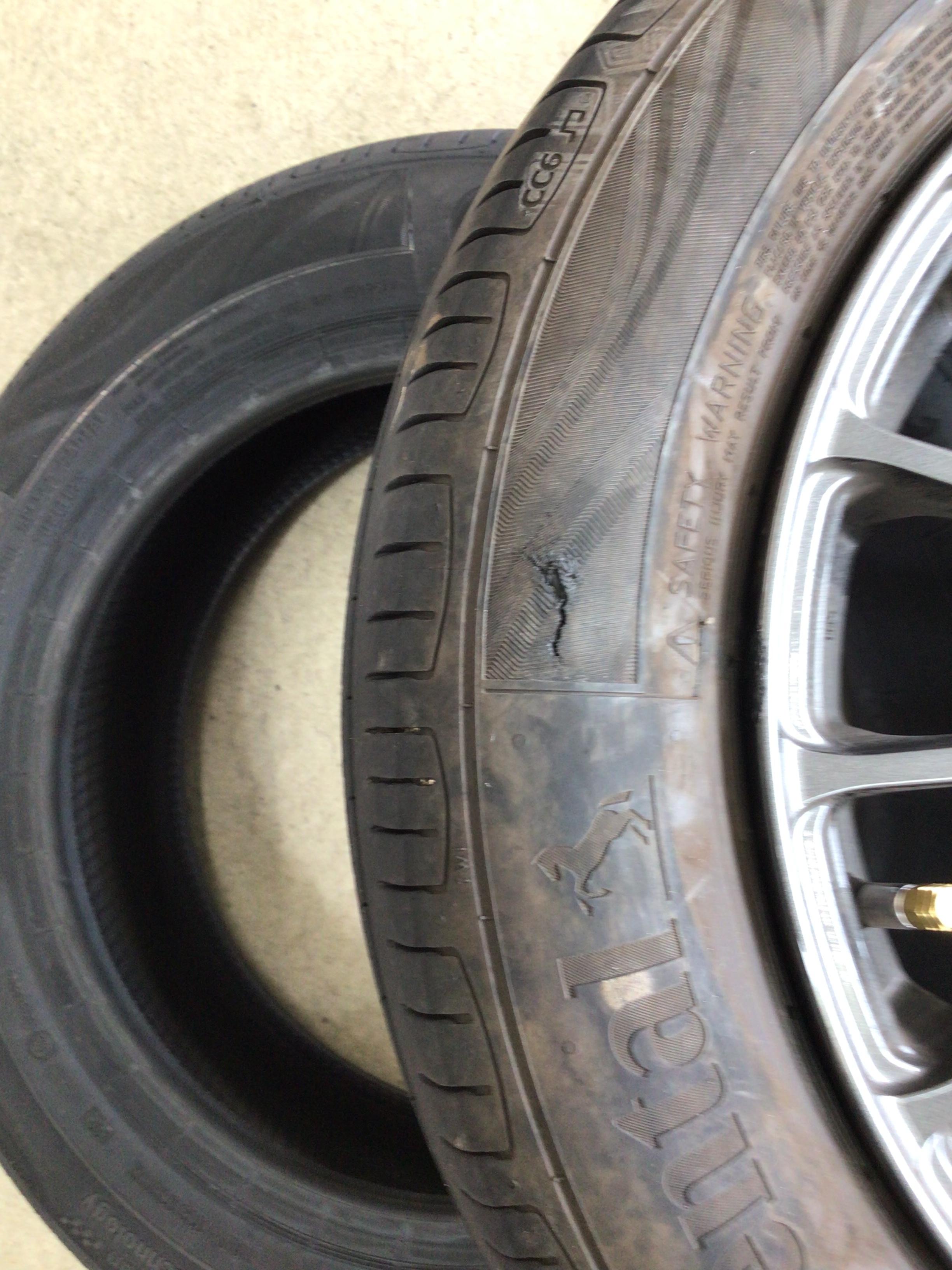とっても静かでふらつき、偏摩耗を抑えてくれるお気に入りのタイヤだったのですが、サイド部分を切ってしまい修理も不可能に( T_T)