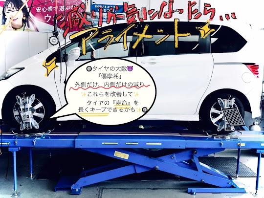 タイヤを車体に対して適正な位置に調整させていただき『偏摩耗』を防ぎます。