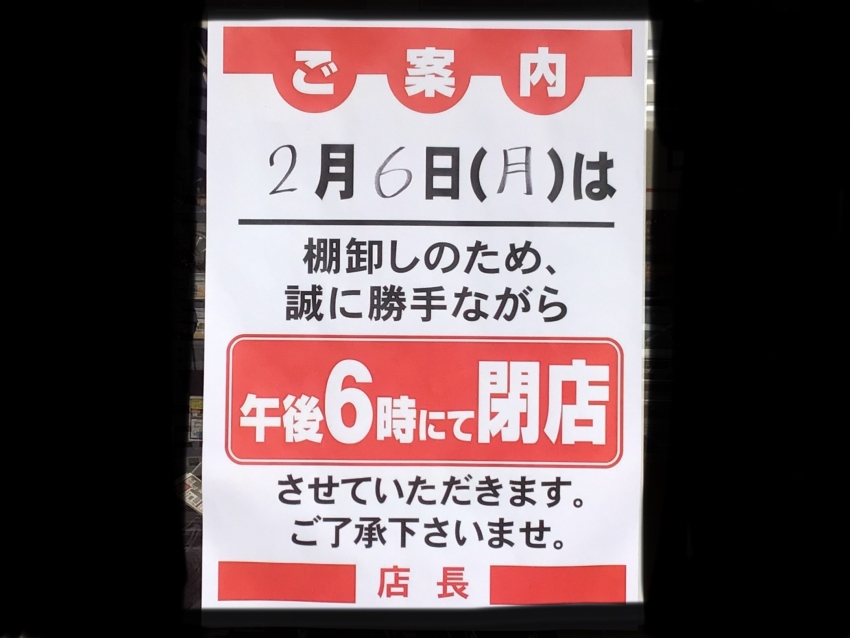 ご来店予定のお客様にはご迷惑をおかけいたしますが