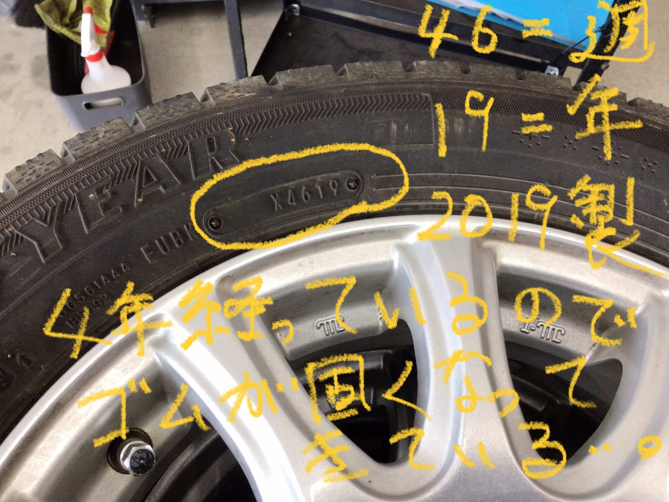 製造年を見てみると・・・『4619』とあります 46=週 19=年 2019年11月11日~11月17日の製造のタイヤということがわかります