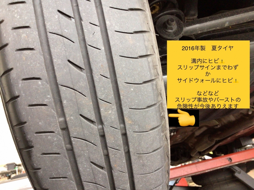 ご利用のあったお客様のタイヤを確認すると劣化が・・・
