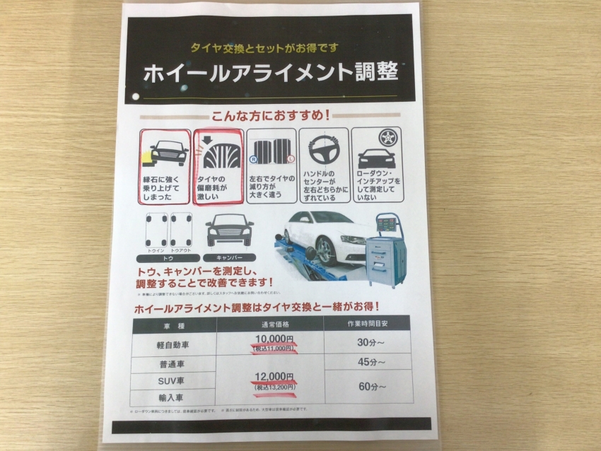 後日だと偏った減りを起こす恐れのあるまま走行をすることになってしまいます・・・