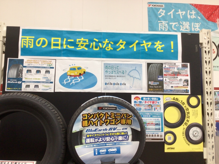 当店では『雨に強いタイヤ』を特設コーナーにて販売いたしております