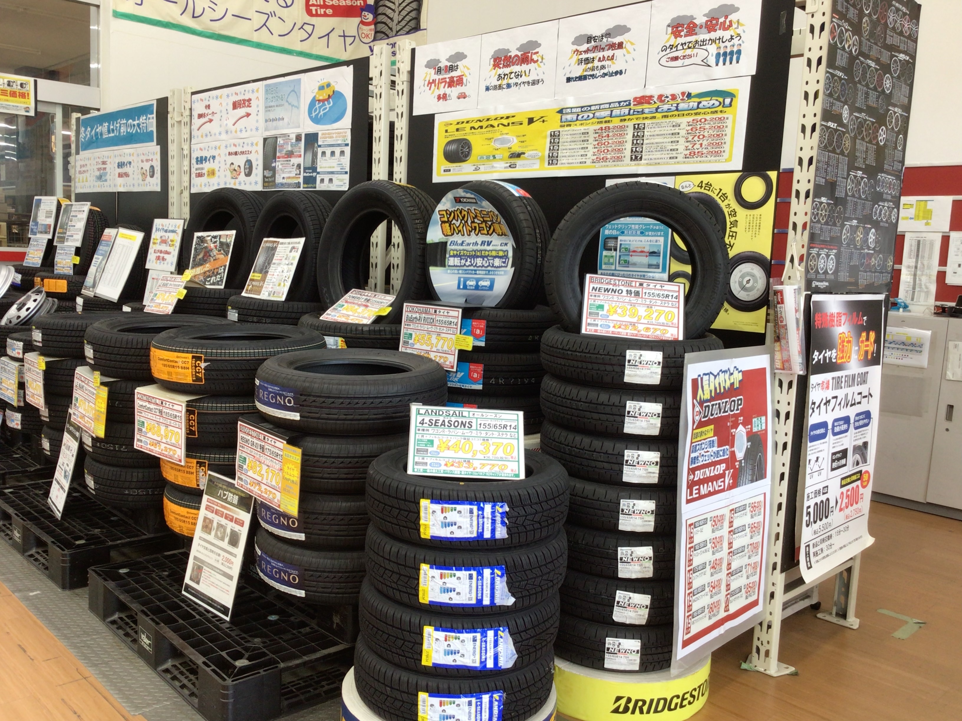 静粛性の高いタイヤや雨に強いタイヤ、またオールシーズンタイヤなど幅広く集めています