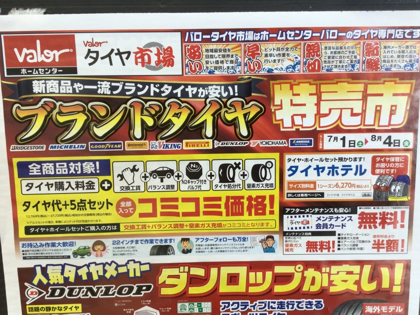 連日お伝えしているように8月4日までブランドタイヤ特売市セール実施中のタイヤ市場