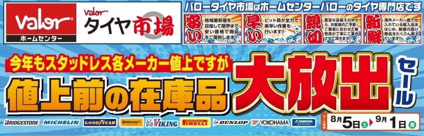 タイヤ・ホイール共に残り僅か品が増えてきました