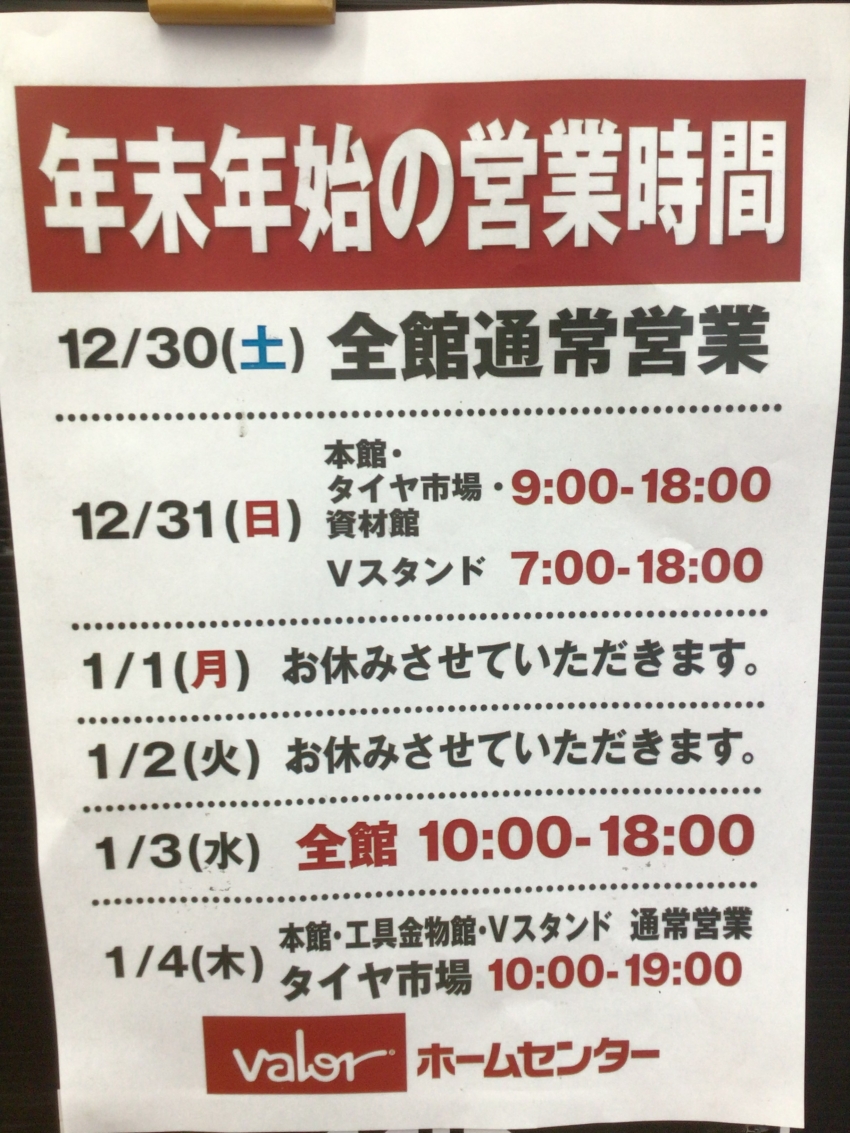 12月31日は営業時間は9時より18時と通常とは異なる営業時間ですのでご注意くださいませ