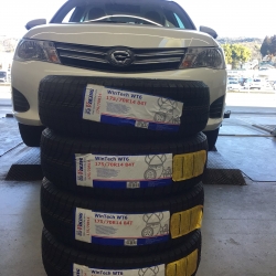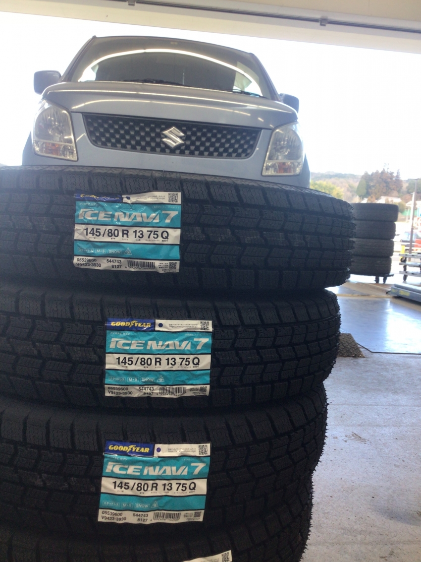本日はスズキ ワゴンRにてスタッドレスタイヤの交換を行いました