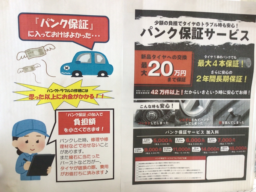 パンク保証ご加入をおススメします!