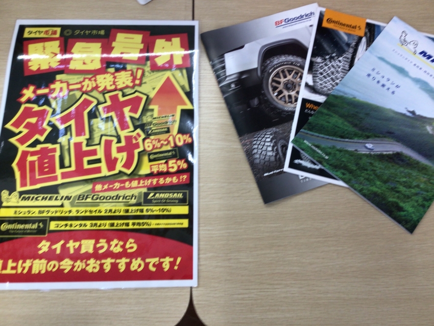 2月よりヨーロッパのタイヤメーカーが値上げを発表しました