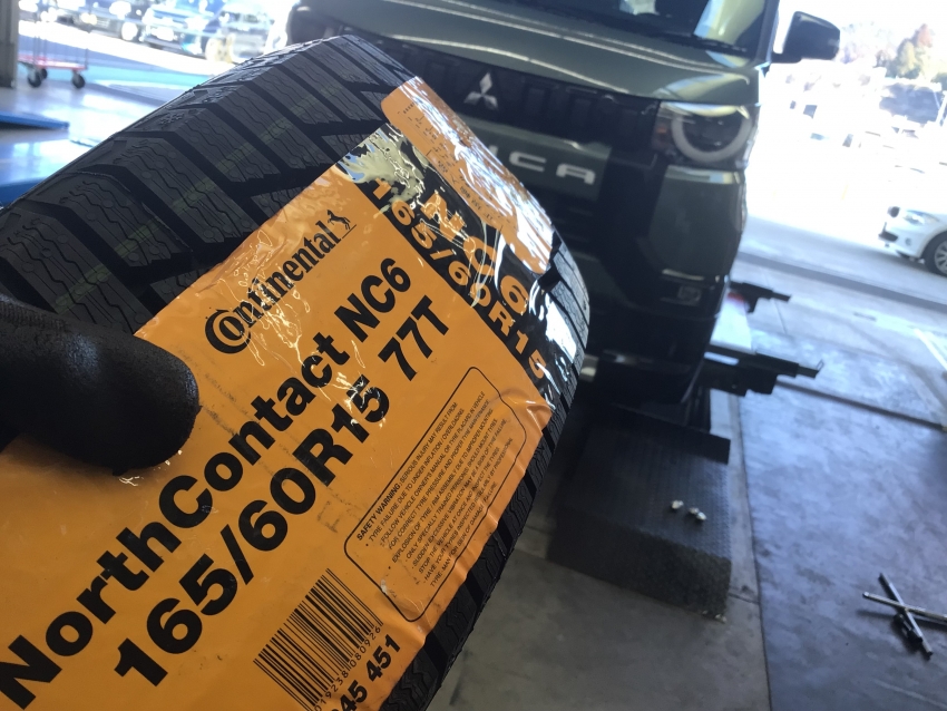 デリカミニにて冬タイヤの交換・取り付けを行いました。