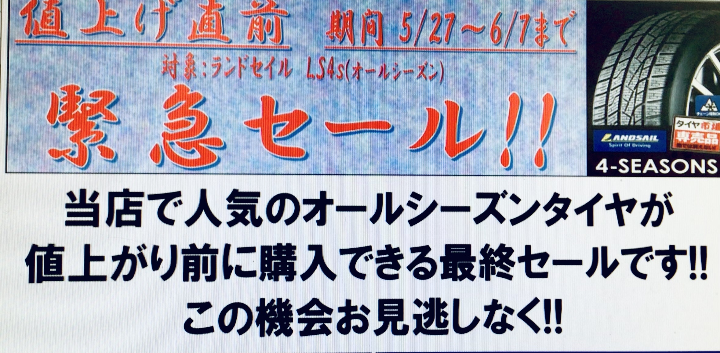 こちらのタイヤが諸般の理由によりまもなく値上がりしてしまいます・・・