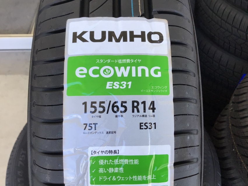 本日は限定入荷したクムホ/エコウィングES31 155/65R14のをご紹介。