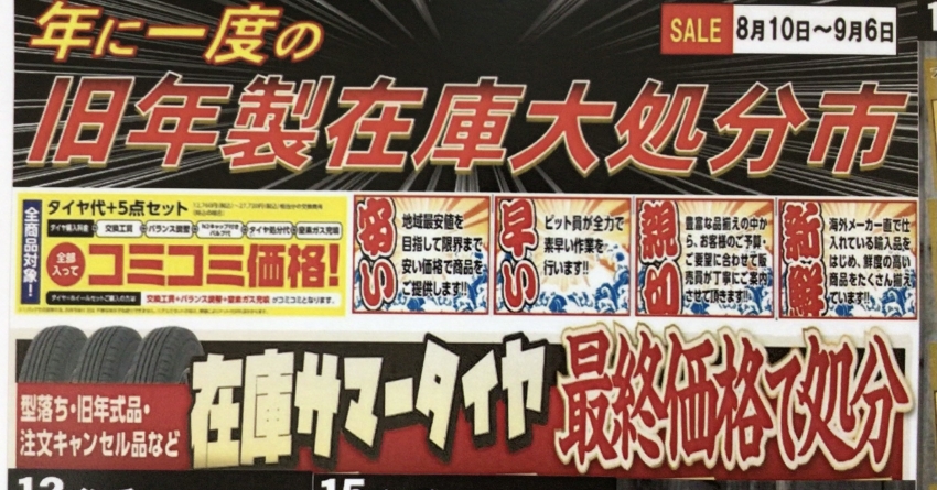 様々なサイズの在庫サマータイヤをお値打ちな最終価格で販売