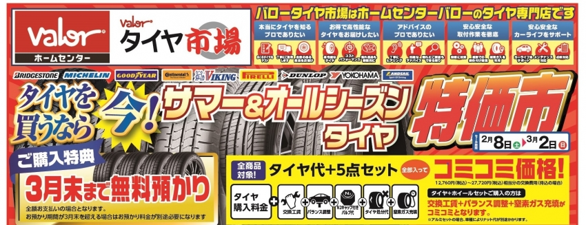 本日から3/2(日)まで サマー&オールシーズンタイヤ特価市 開催しております!!