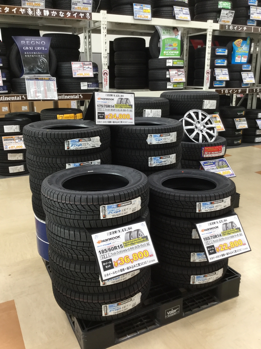 コンチネンタル等の有名メーカースタッドレスタイヤのホイールセット、また、ハンコックタイヤのスタッドレスタイヤ単品がお安くなっております!!