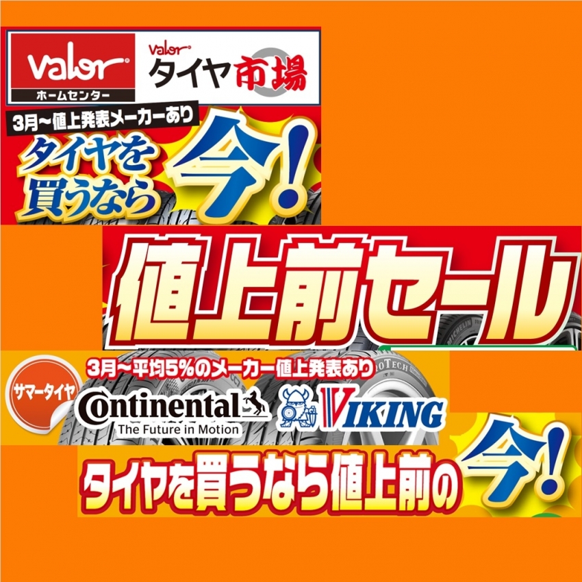 ただいま、"タイヤを買うなら今! 値上げ前セール"実施中です!!