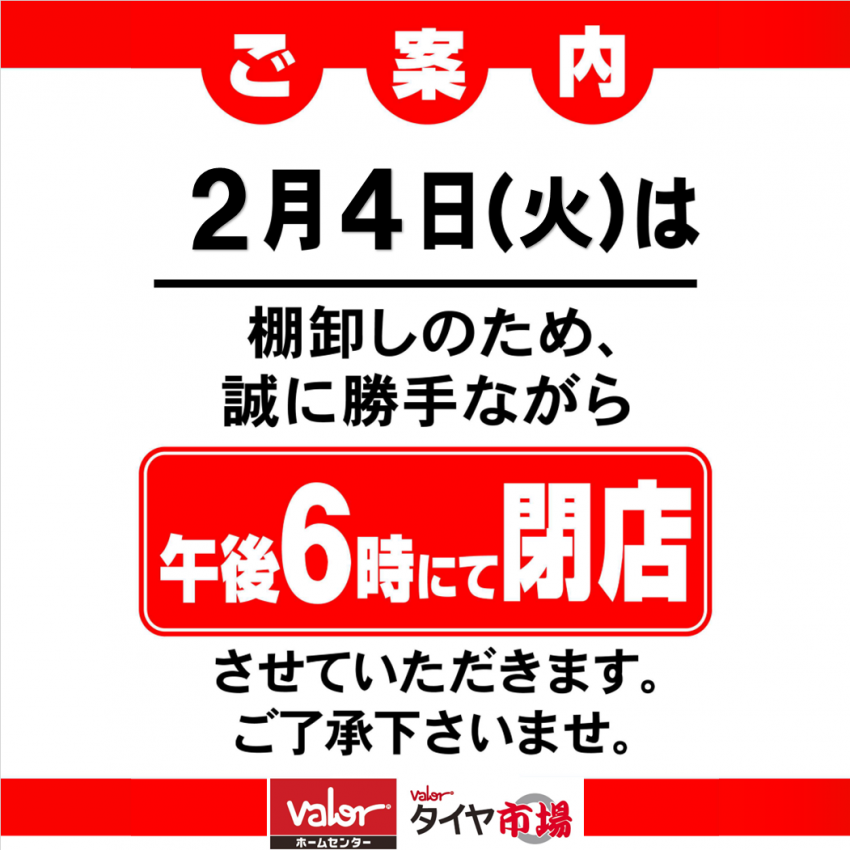 来たる2月4日(火)当店棚卸の為、誠に勝手ながら