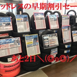 スタッドレスのセールが最終日となりました!!!\(◎o◎)/!!!
