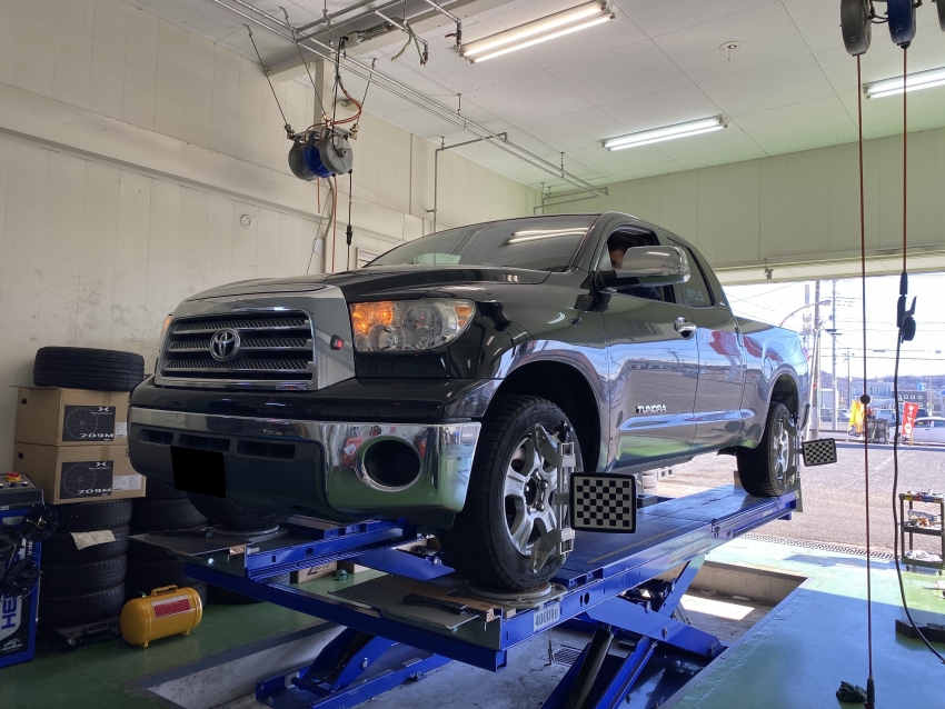 タイヤ市場ではこんなにデカイ車もアライメント取れちゃいます‼