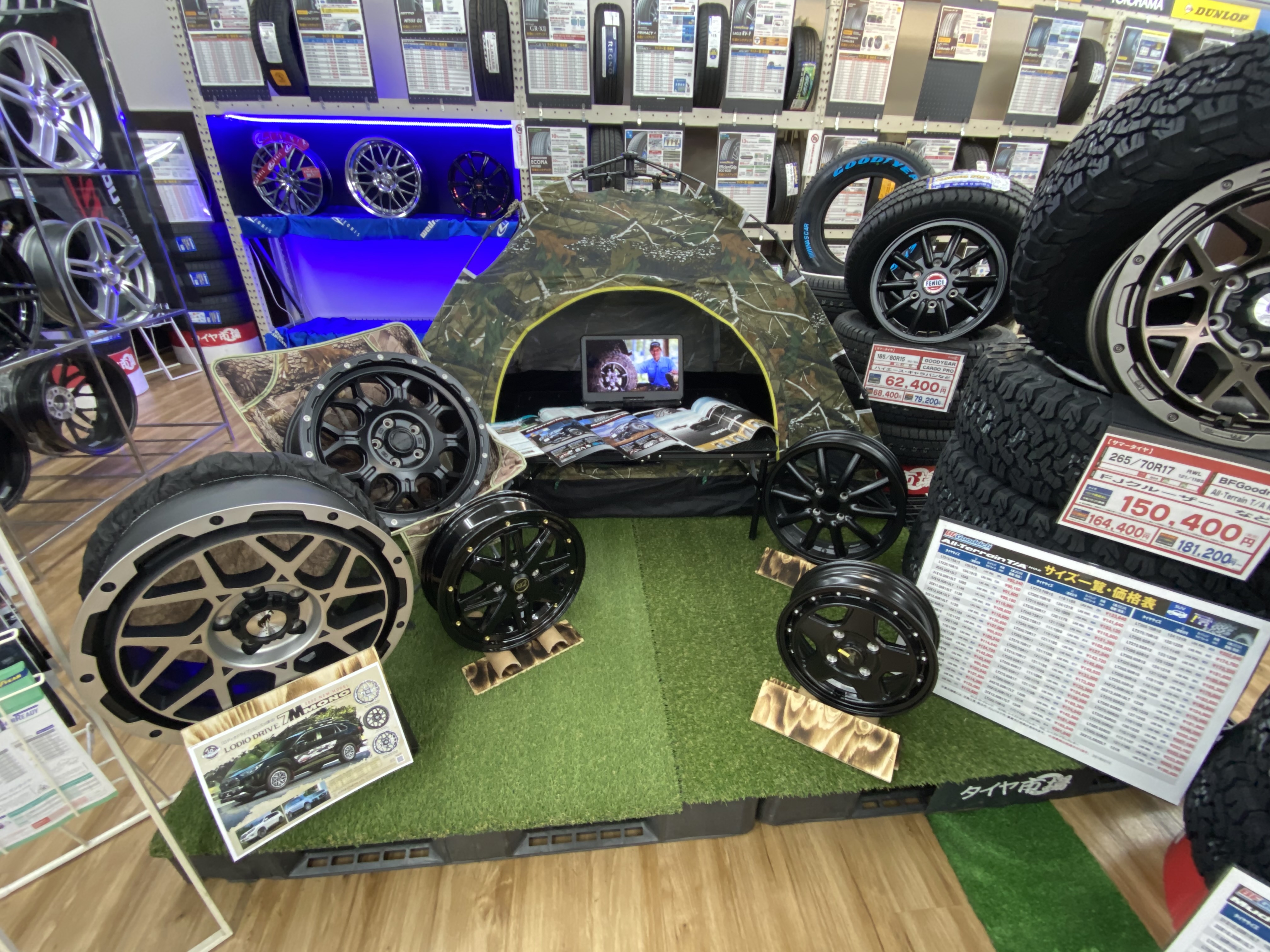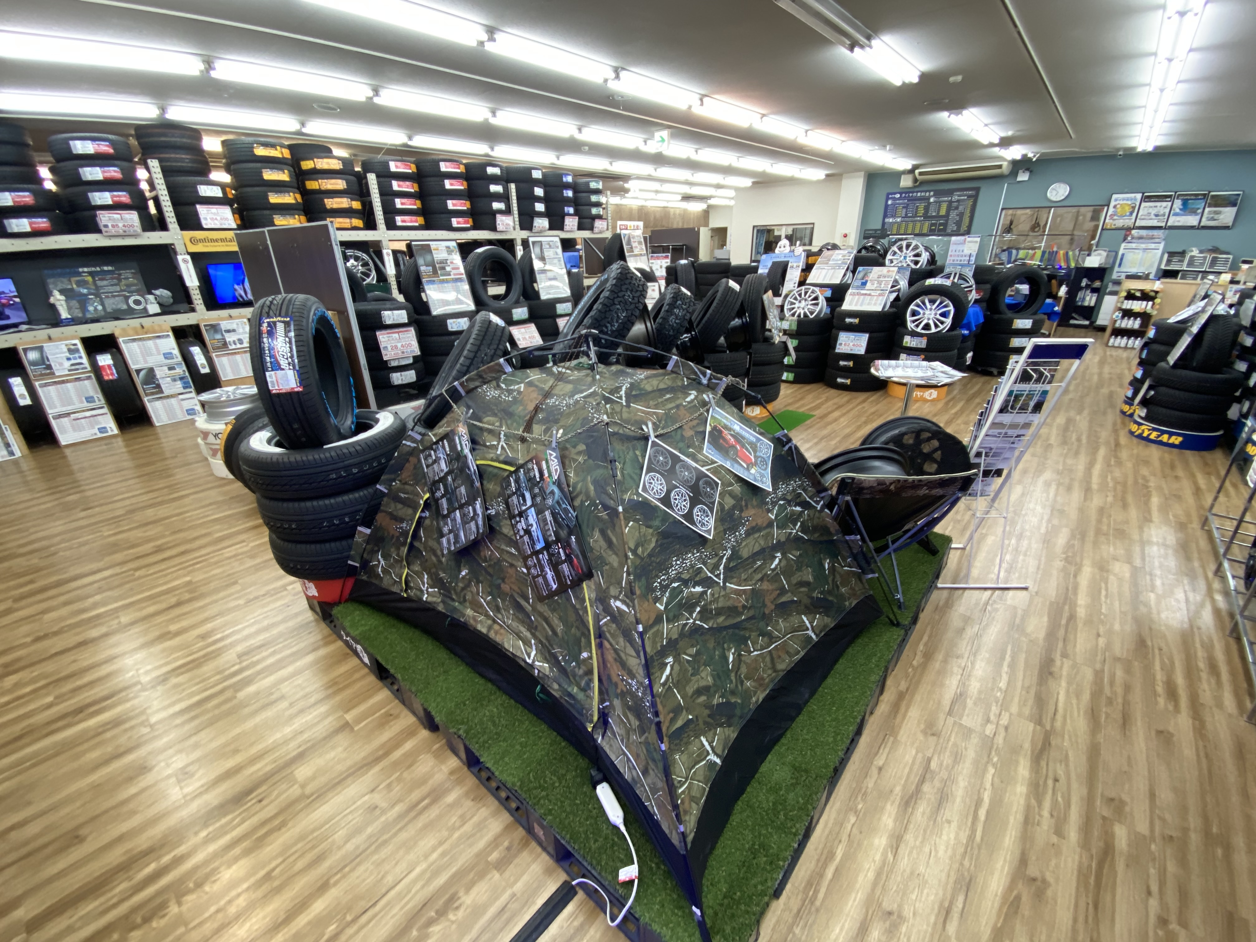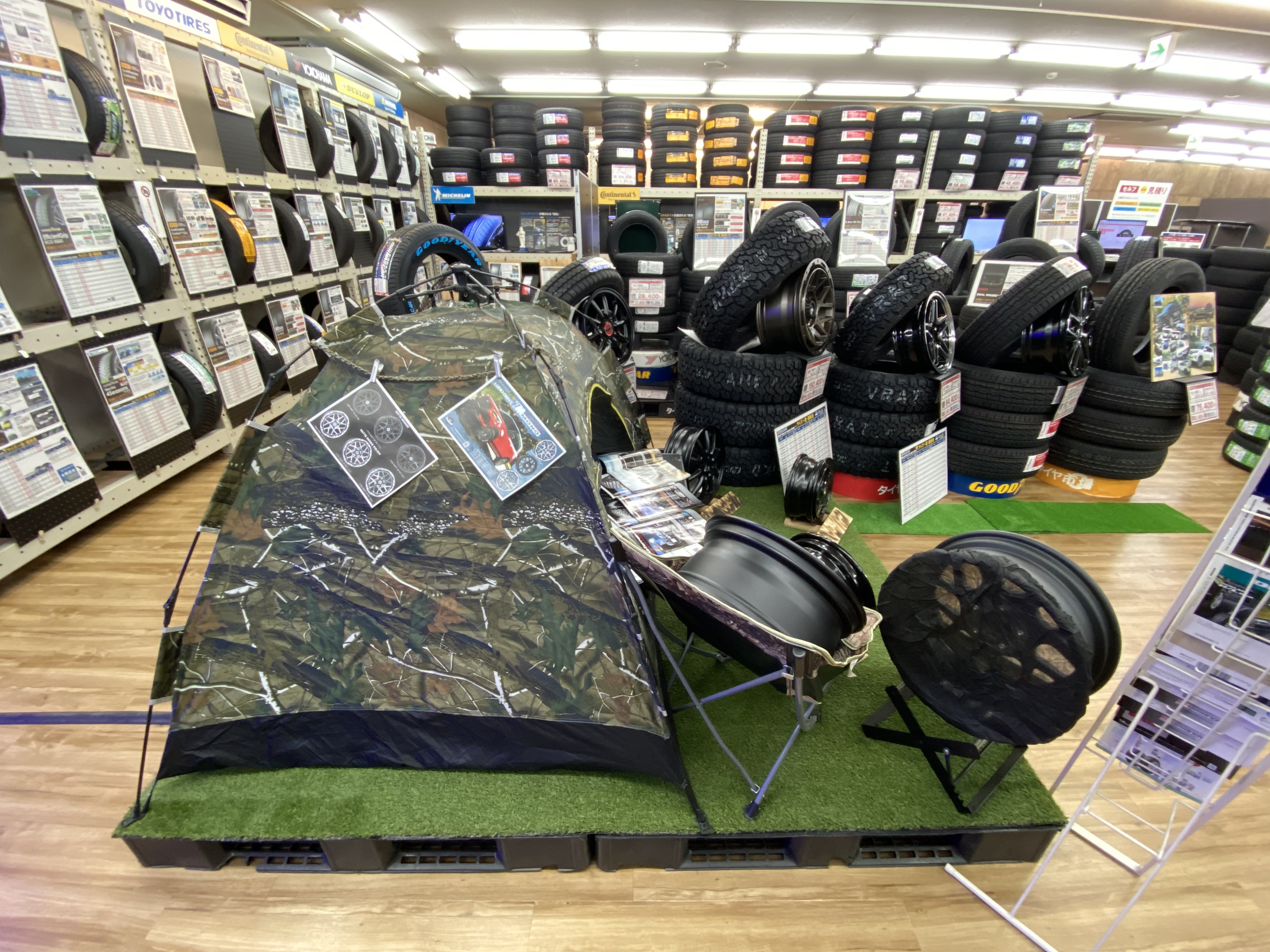 【キャンプ人気に便乗】キャンプに似合うタイヤコーナー設置!