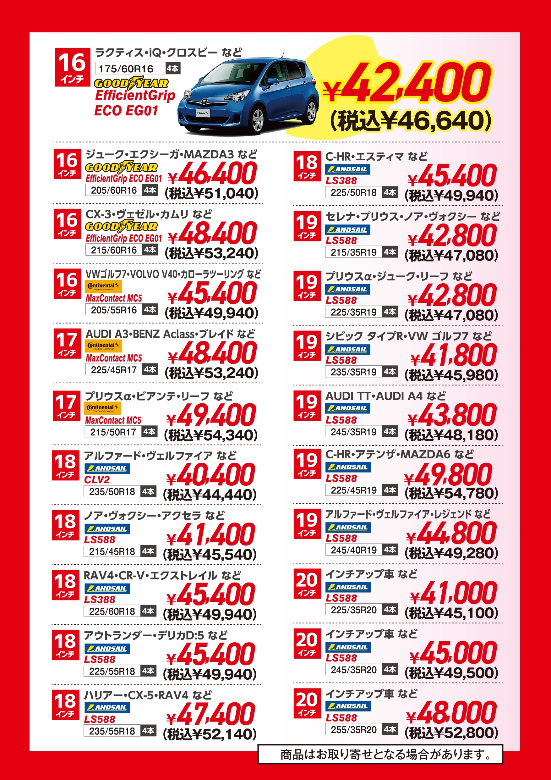 ラクティス・C-HR・ヴェゼルなどがコミコミ?! 最大5万円でタイヤが購入出来ちゃう商品紹介!