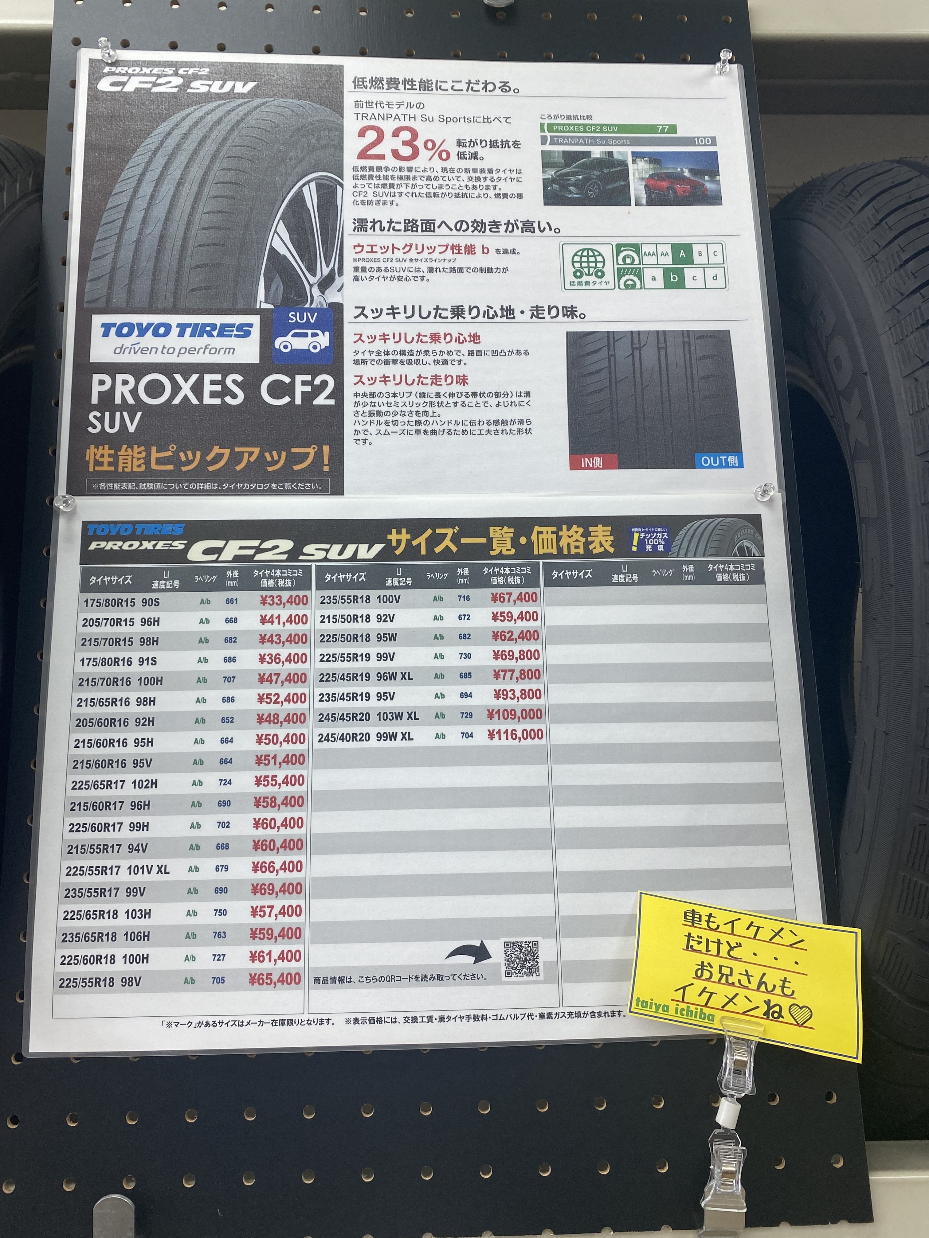 種類『PROXES CF2 SUV』SUV車専用の低燃費タイヤです❕