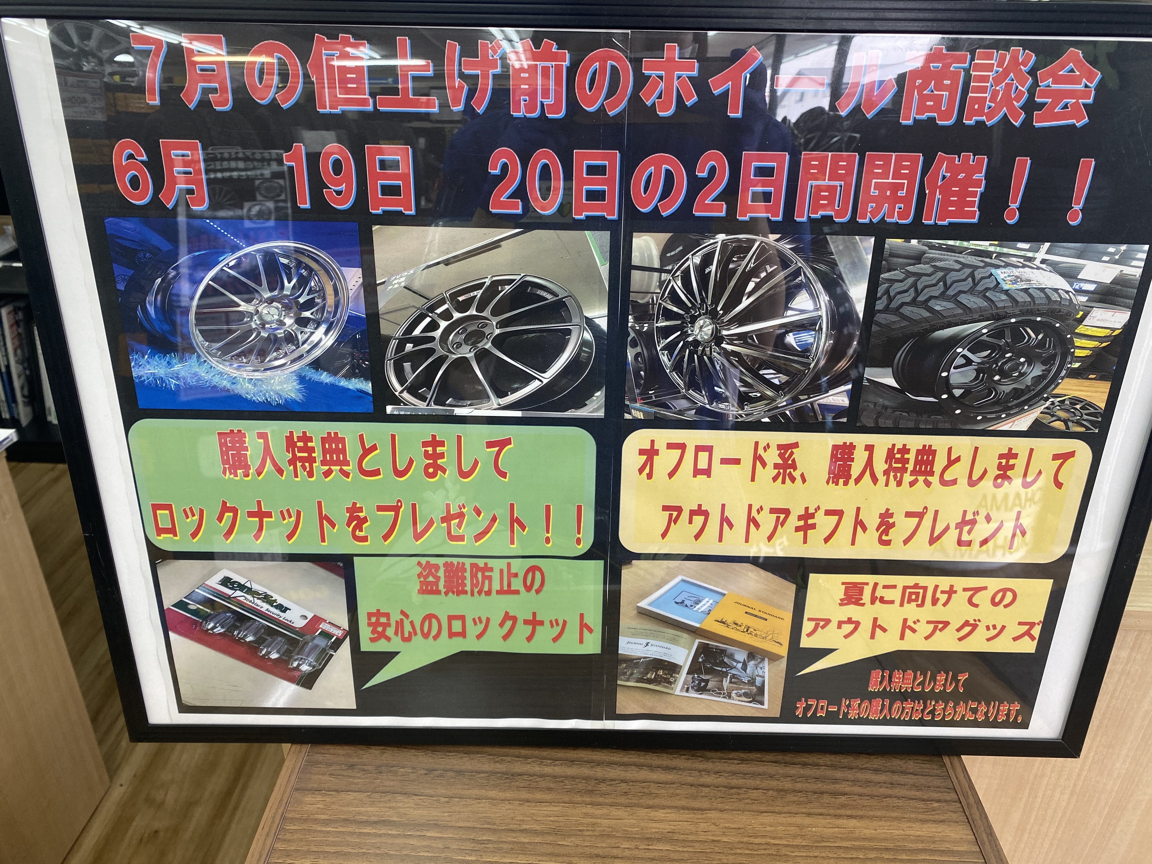 それに伴いタイヤ市場佐野店では、『6月19日・20日』の2日間