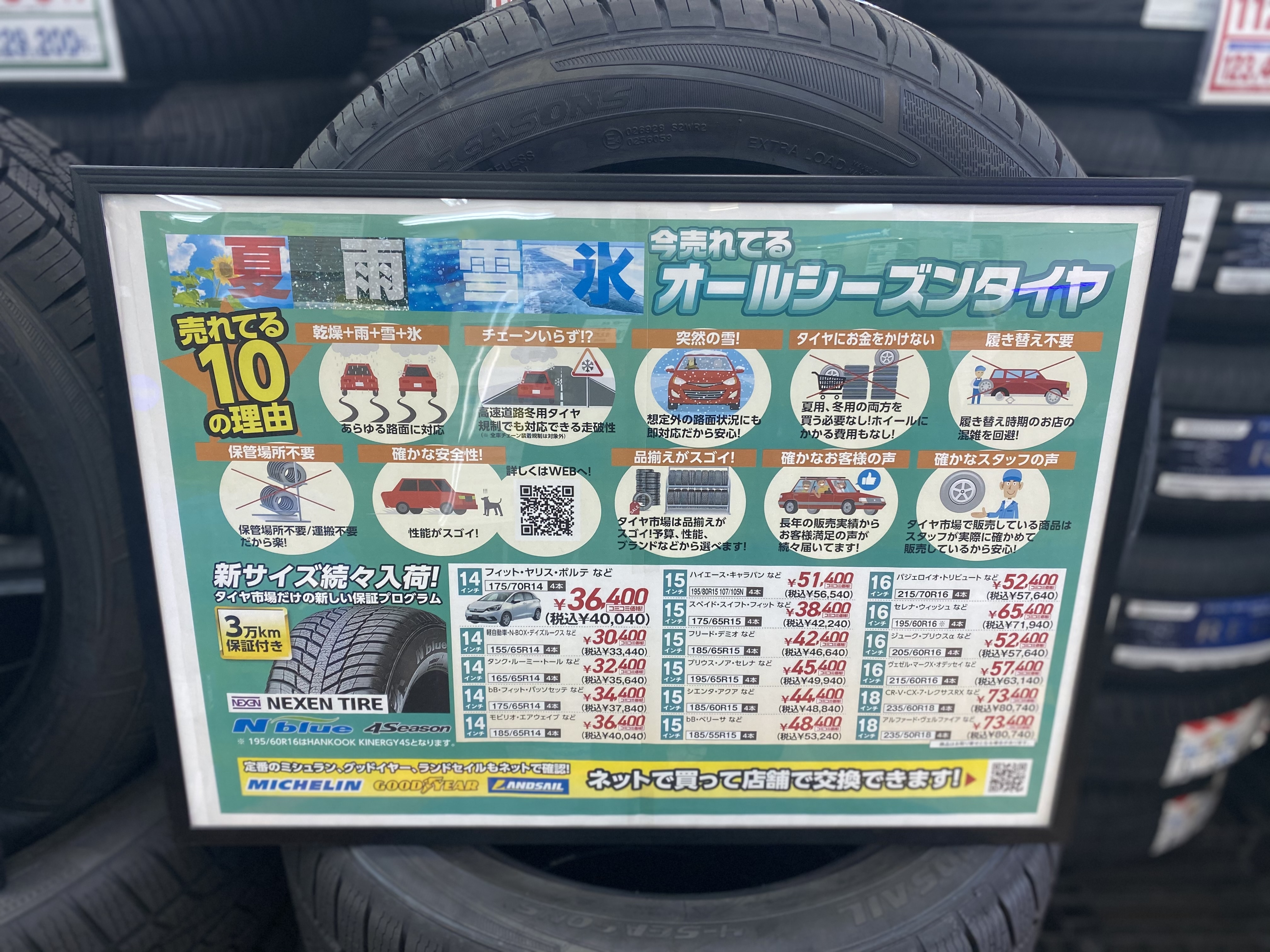 本日のご案内ですが、最近『オールシーズンタイヤ』をご購入して頂くお客様が増えてきました(/・ω・)/