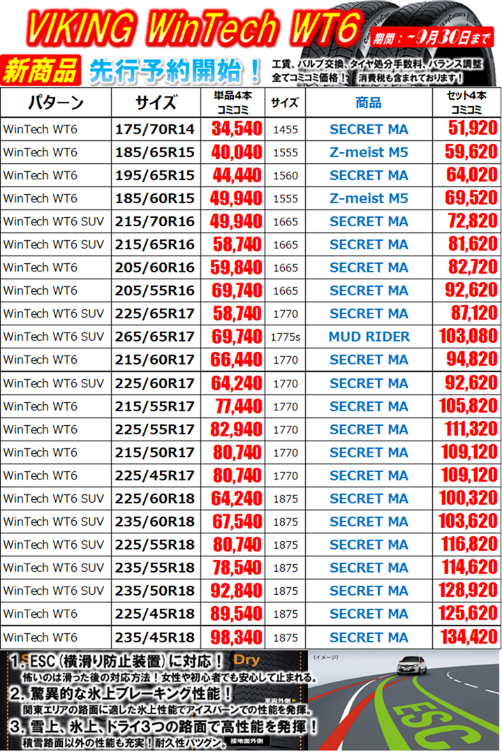 旧年製造 在庫品限りのスタッドレスタイヤ 大特価にてご案内中(完売サイズ・名柄もございます)