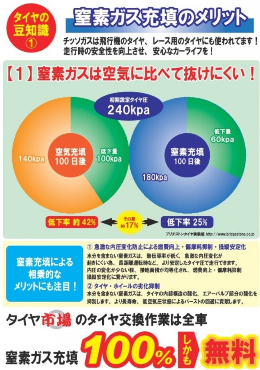 水分を含まない窒素ガスはタイヤ&ホイール酸化を抑制し,より長持ちさせます❕