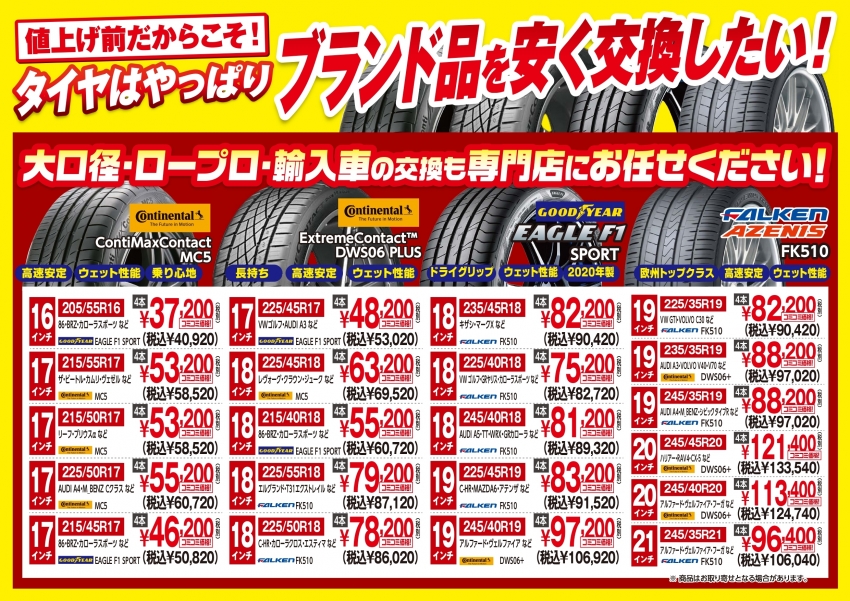 予約方法その②【タイヤホテル(預り)の予約はコチラ!】