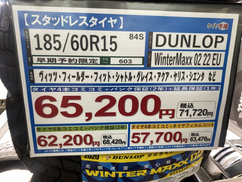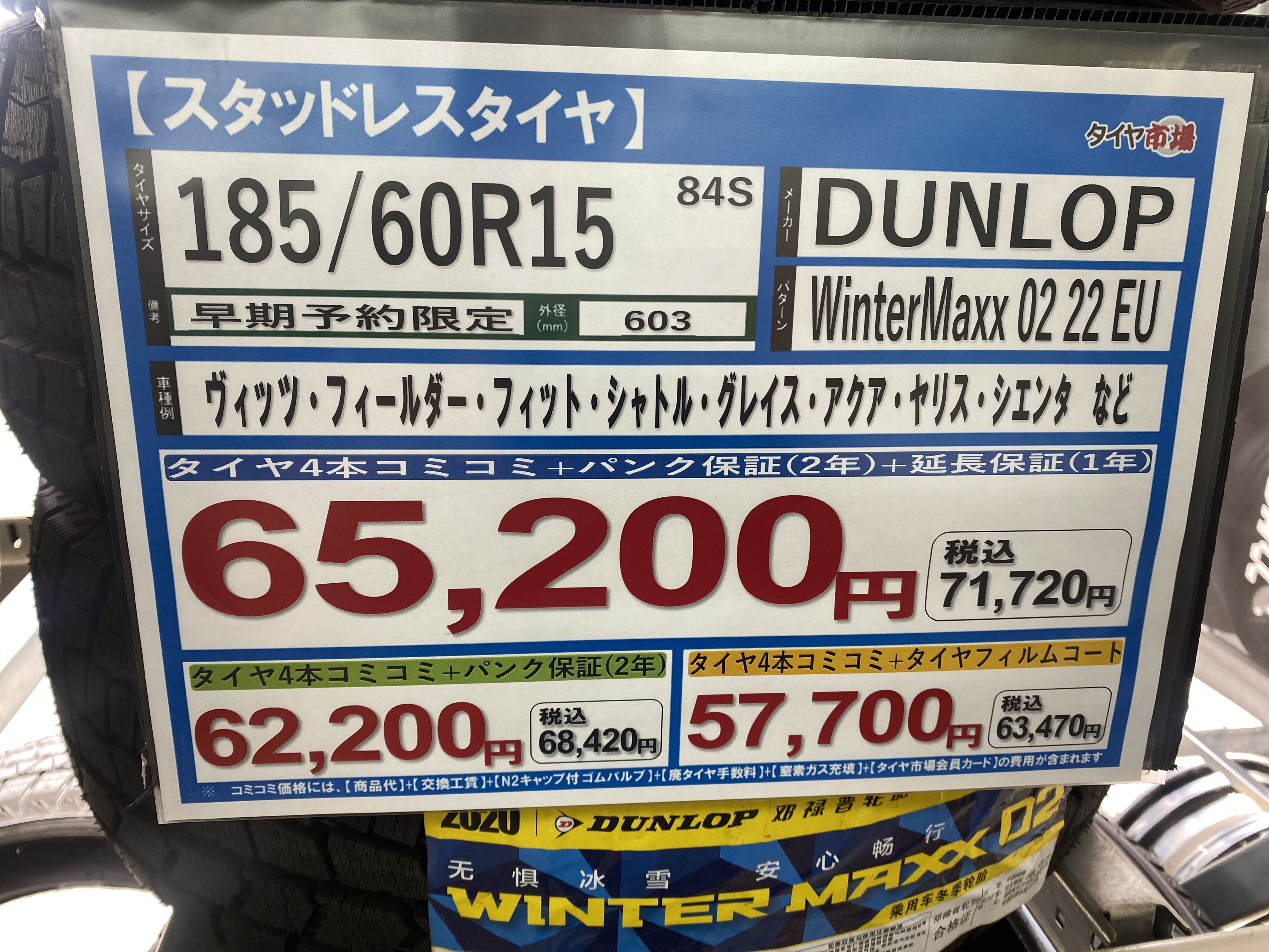 国産のスタッドレスタイヤならタイヤ市場佐野店にお任せ下さい❕旧年製だけど性能は抜群の安心感❕~ダンロップ編~