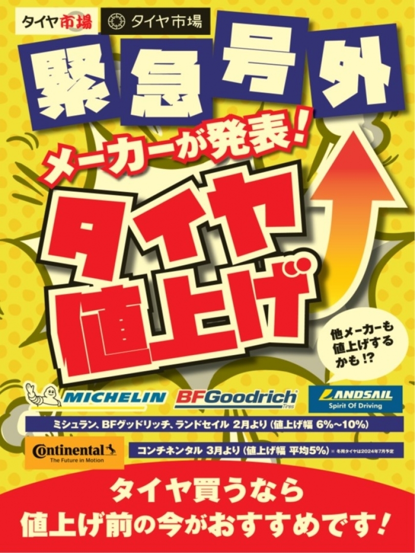 緊急告知❕2月から各メーカーがタイヤの値上げを発表:;(∩´﹏`∩);: