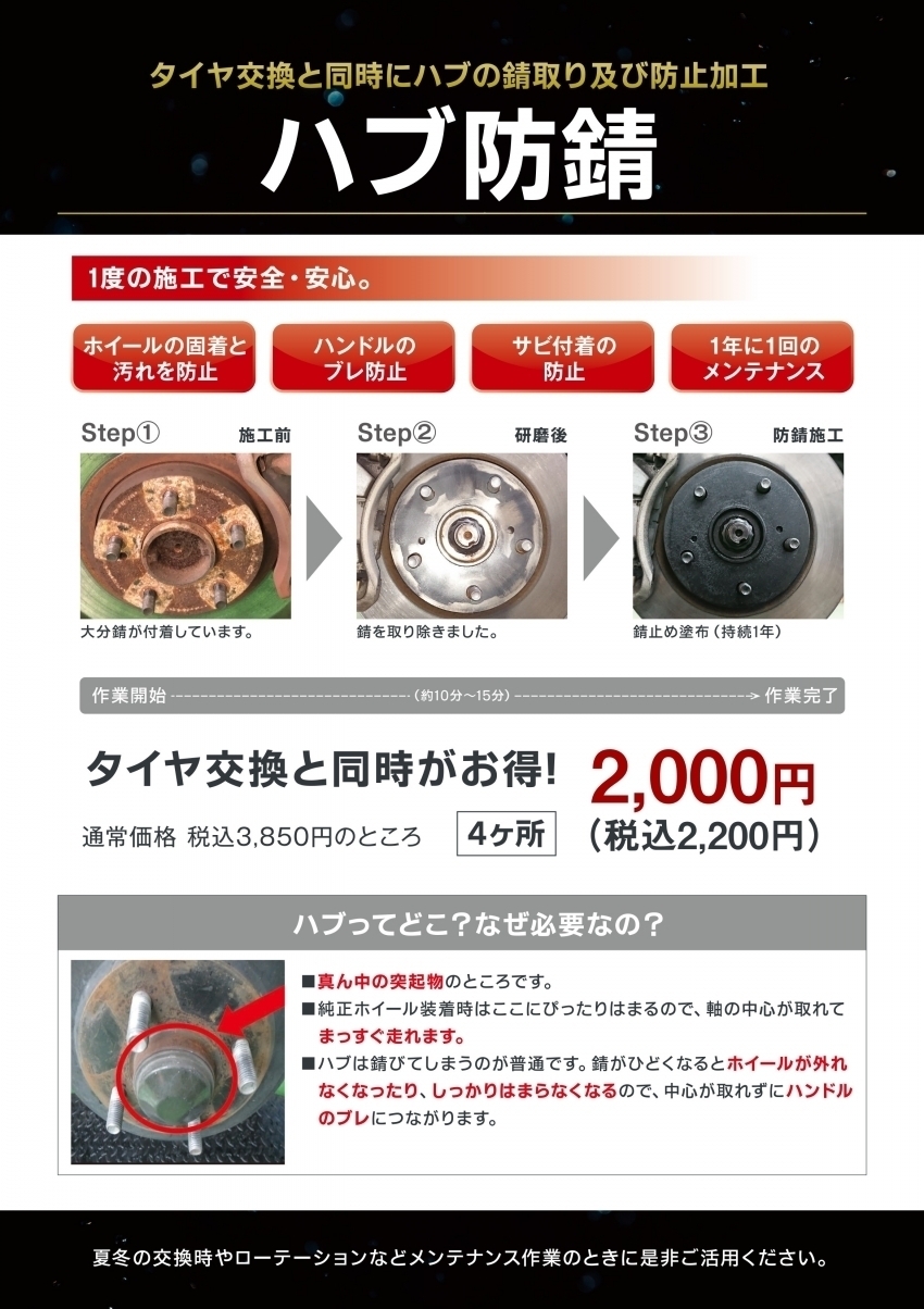 ハブ防錆は是非タイヤ交換と一緒!!