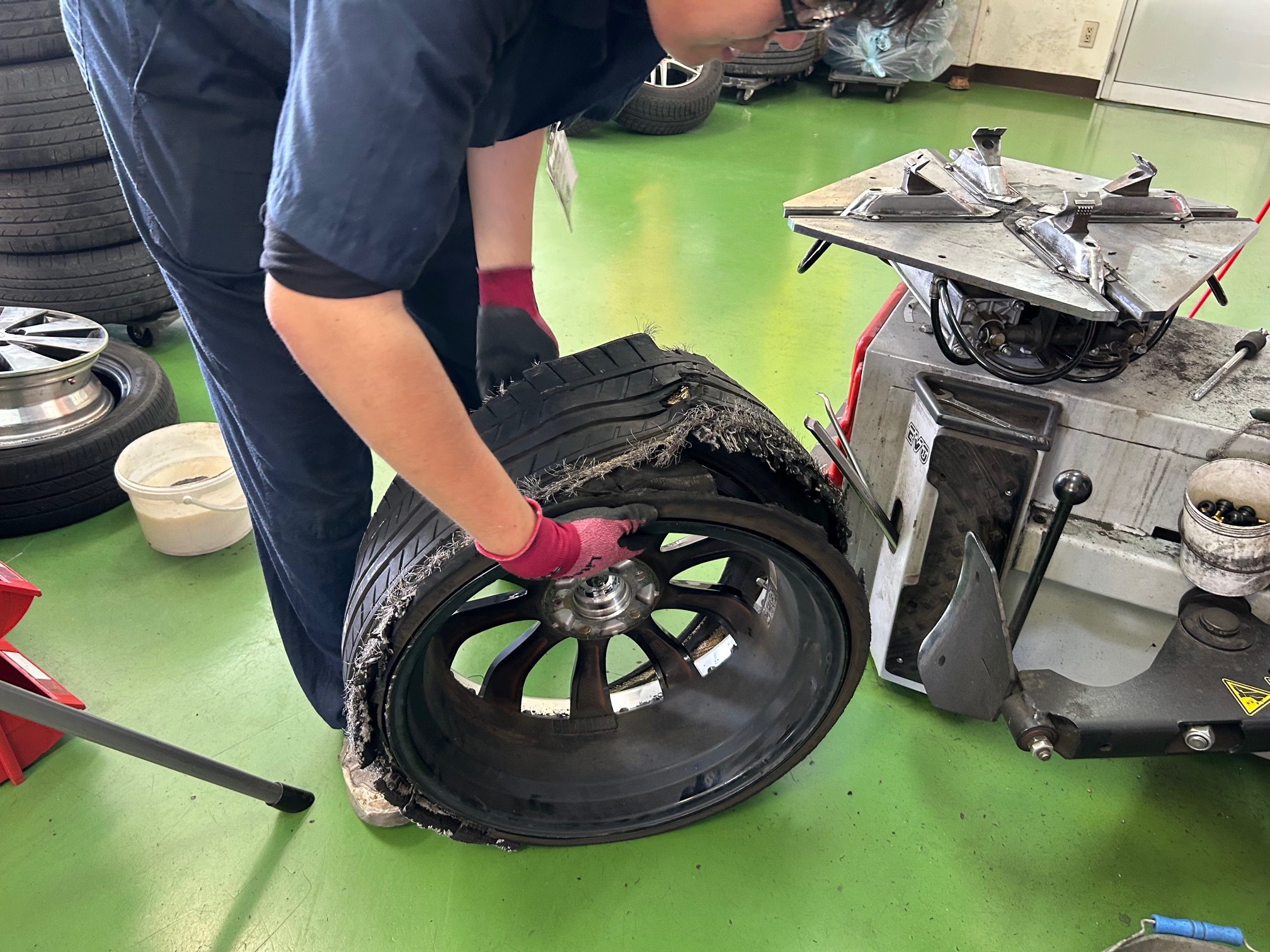 バーストしてしまったタイヤの