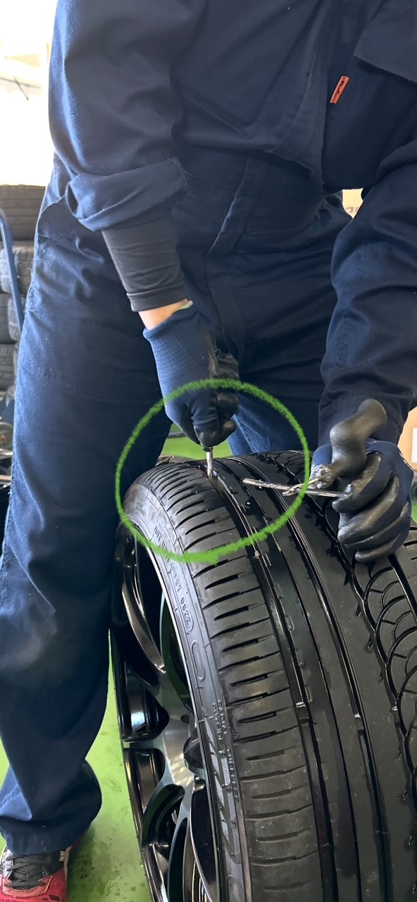 整えた穴にパンク修理材をねじ込みます(^^)/