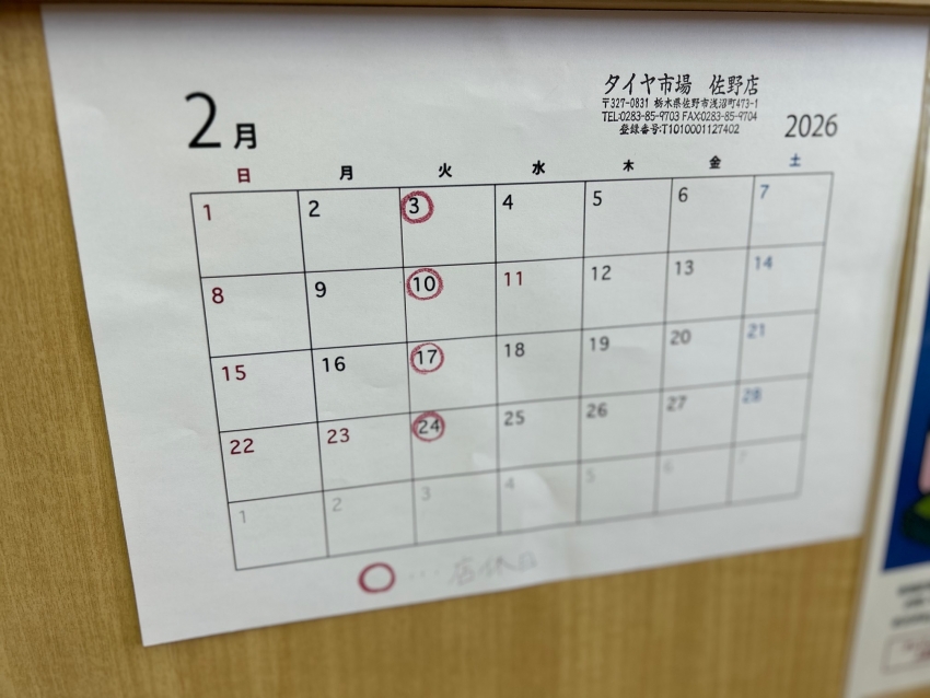 ここでタイヤ市場佐野店の定休日のお知らせです!