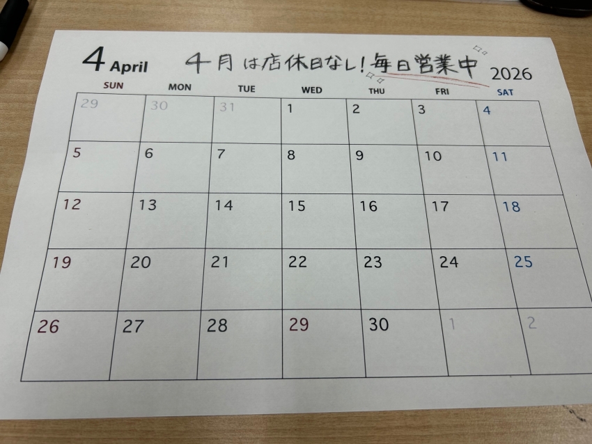 4月は店休日なし!!タイヤ交換のご予約大歓迎です(^^ゞ