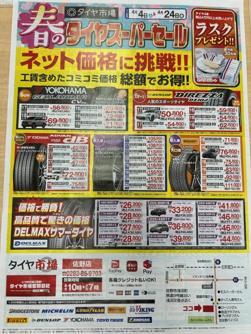 【佐野店】春のタイヤスーパーセール開催中!ネット価格徹底対抗!