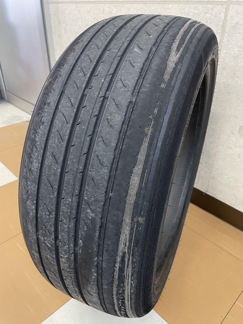 タイヤの地面に接する部分の中心はまだ使える状態なのに・・・。
