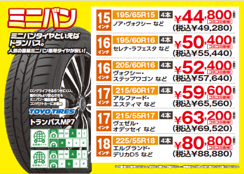 TOYO TIRES の トランパスMP7 が SELL になっています。
